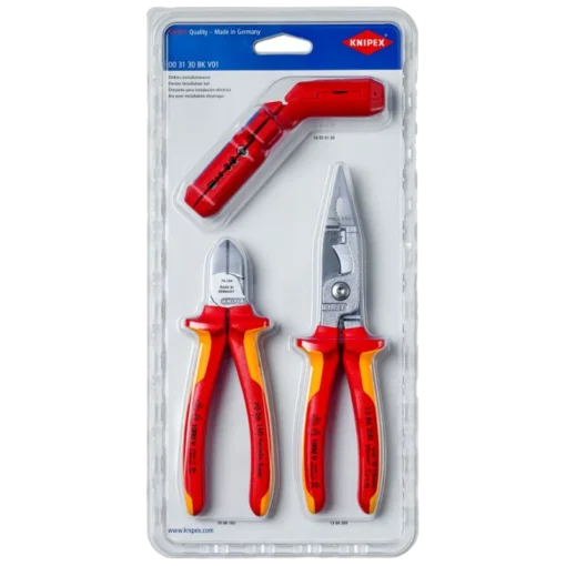 Склад набору:● Електромонтажні кліщі KNIPEX 13 86 200;● Кусачки бокові KNIPEX 70 06 160;● ErgoStrip Універсальний інструмент для видалення оболонки KNIPEX 16 95 01 SB