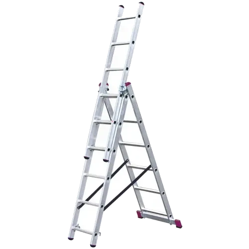 Універсальні 3-секційні сходи можуть використовуватися як звичайні приставні або висувні сходи, або як драбини. Відмінно підійде для побутового використання на дачах, приватних котеджах і для різноманітних робіт на висоті в офісах, магазинах, ресторанах.