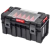 ● Міцна конструкція – витримує навантаження до 120 кг● Водонепроникність та пиленепроникність (IP66) – захист вмісту від вологи та пилу● Металеві засувки – посилена фіксація для надійного закриття● Телескопічна ручка – зручне керування та можливість знімання для транспортування● Органайзер на кришці – зручне зберігання дрібних інструментів та аксесуарів● Висувна ручка та візок – легкість пересування● Модульна система – можливість комбінування та доповнення іншими модулями
