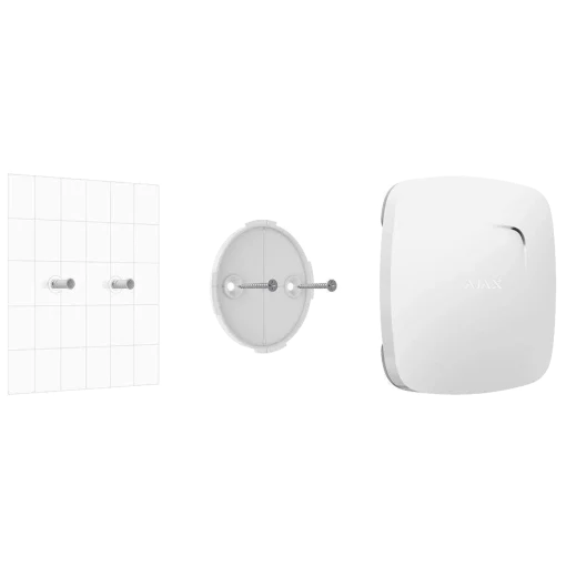 Спеціальний кронштейн для швидкого встановлення датчиків Ajax Systems: Ajax FireProtect .Особливості встановленняПанель слід закріпити до монтажної поверхні за допомогою шурупів у комплекті. Не варто використовувати липку стрічку.Важливо! Перфоровану частину не потрібно виламувати! Вона забезпечує спрацювання тампера у разі спроби відриву датчика поверхні.Після монтажу панелі кріплення необхідно надіти датчик і коли блимає світлодіод – це означатиме, що тампер на датчику замкнений.